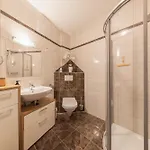 Profitez du confort d'une salle de bain dans Bergzauber Appartement Stubai, équipée d'un sèche-cheveux et des draps de bain. Une toilette séparée et une douche sont également disponibles.